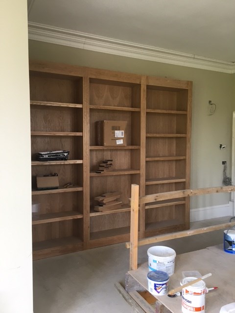 We've managed to have the library and gallery painted, the cornicing is done and oak bookshelves (with hidden seat too) constructed. The glorious spring sunshine is streaming through the windows. This is going to be such a beautiful room to be in. Custom made spindles and oak handrail is to be fitted to the gallery next week, thanks to Stockwells of Glasgow and our ever faithful joiner Brian. Can't wait to see the final result...